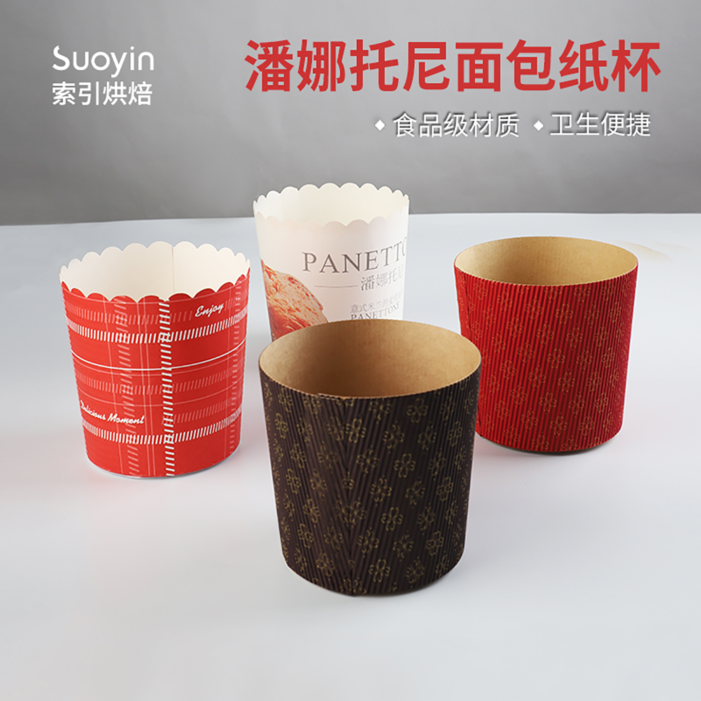 潘娜托尼纸杯圣诞蛋糕4寸索引烘焙包装耐高温食品级面包纸托模具