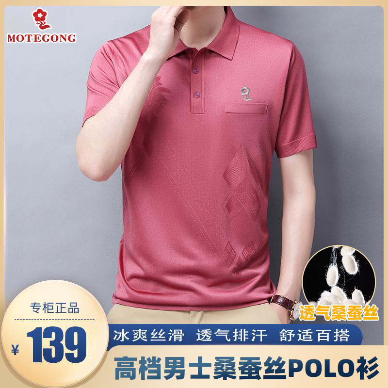 梦娇2023夏季新款高档男士桑蚕丝短袖翻领刺绣POLO衫翻领冰丝t恤