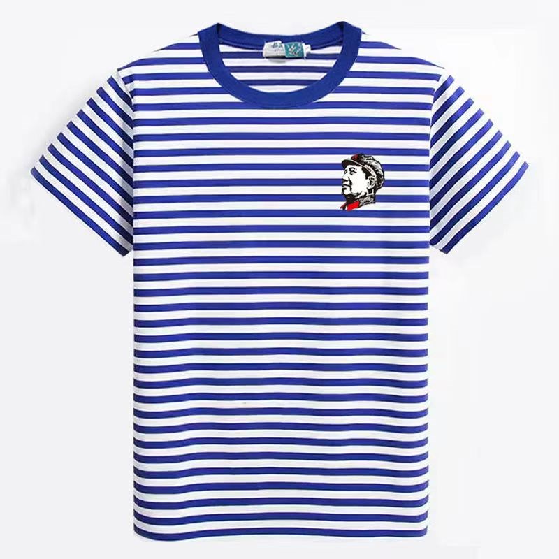 为人民服务t恤纯棉海魂衫短袖圆领蓝白条纹男女情侣班服工作服夏
