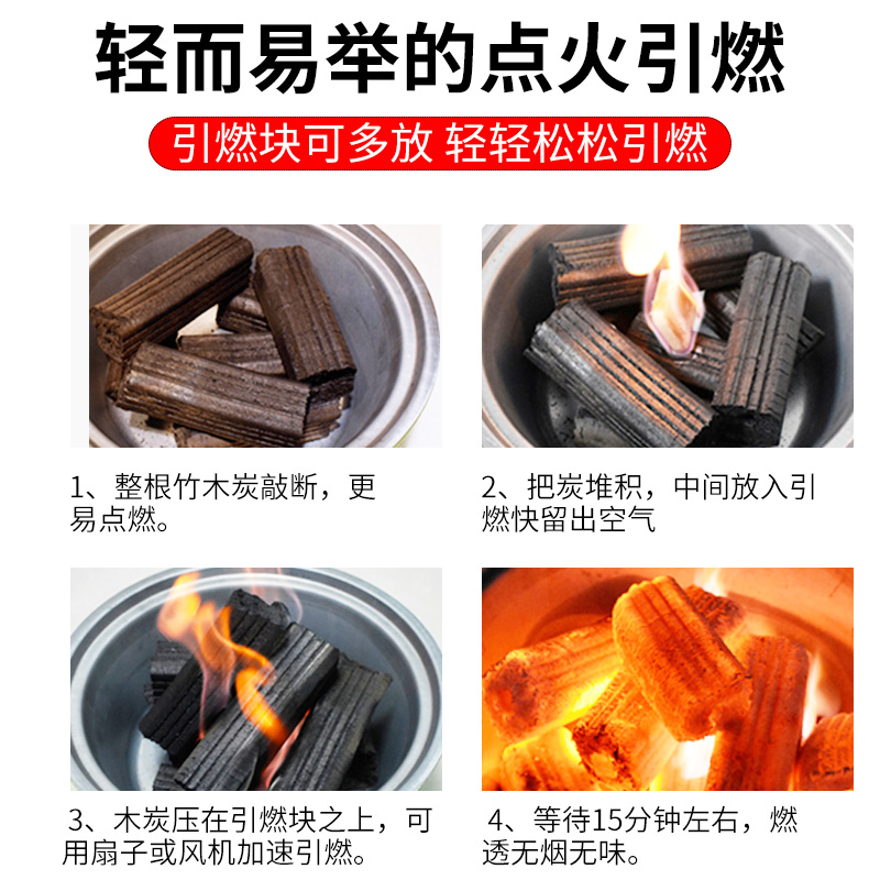 家用果木炭环保无烟烧烤碳室内取暖竹炭烤火铜锅R木炭易燃耐烧整