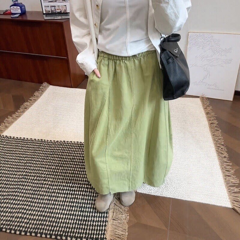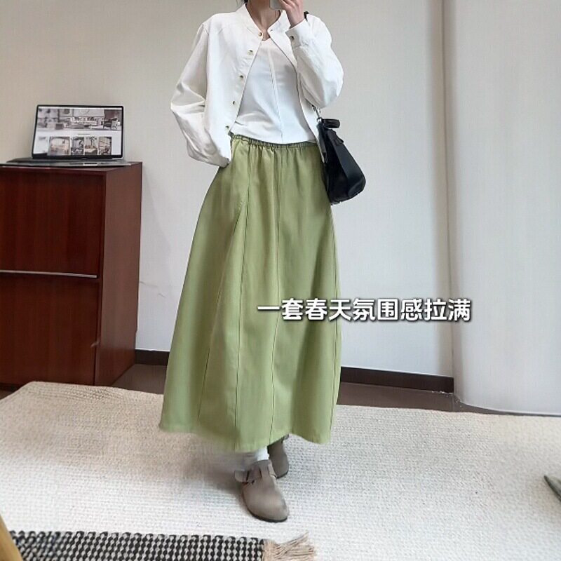 日系牛油果绿花苞半身裙女2026新款春季大码胖mm梨型身材伯克利裙