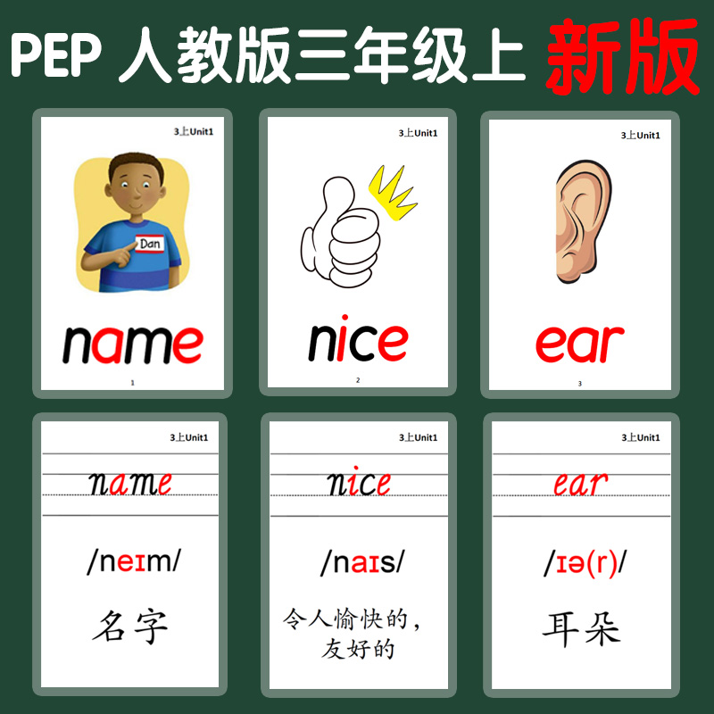 PEP人教版小学生英语课本同步三年级上下单词卡片教学课堂塑封卡