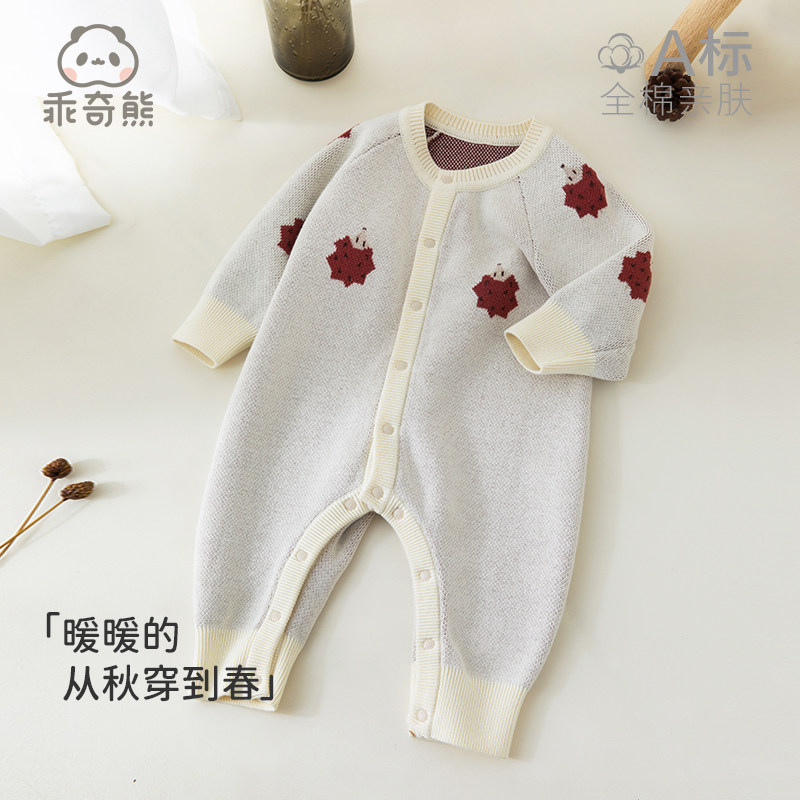 秋冬季婴儿针织衫连体衣保暖宝宝纯棉毛线衣外穿哈衣爬服洋气秋装