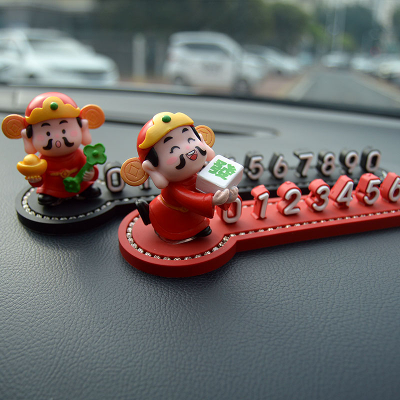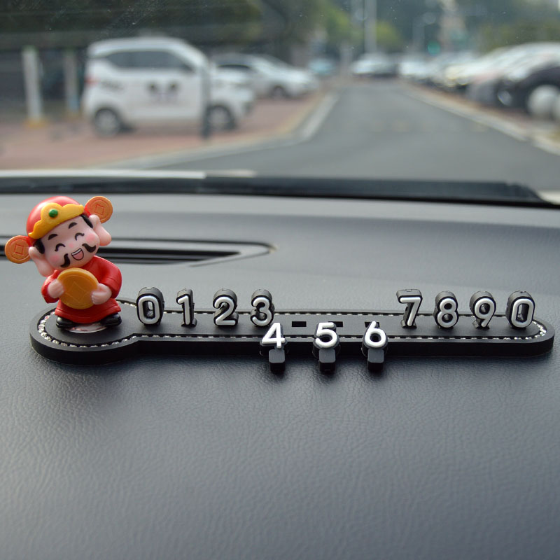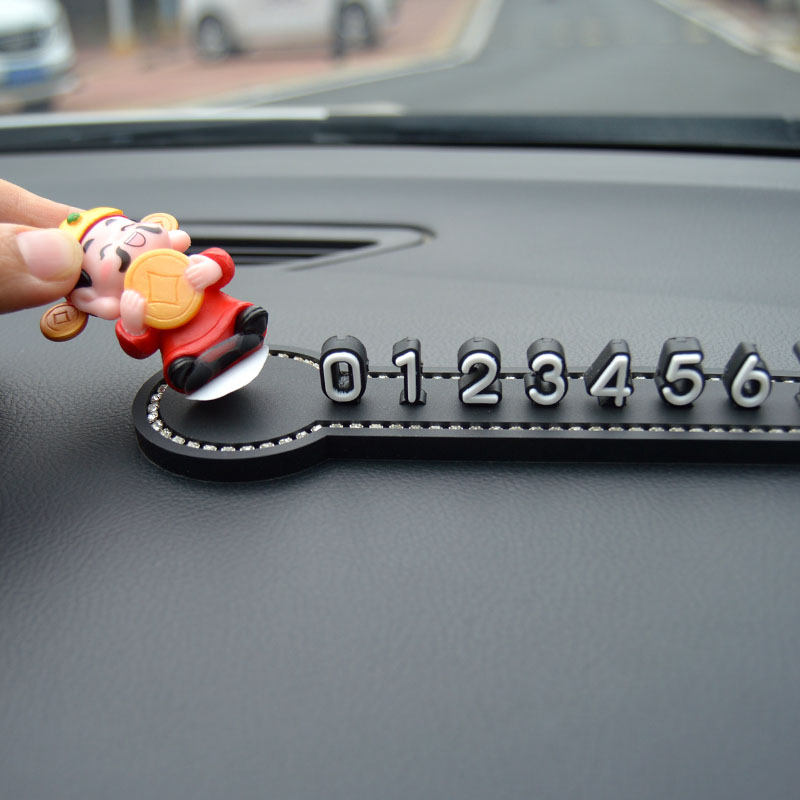 汽车临时停车号码牌可爱移车挪车电话牌车载手机留号器财神爷摆件