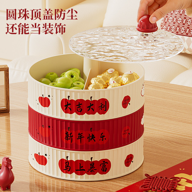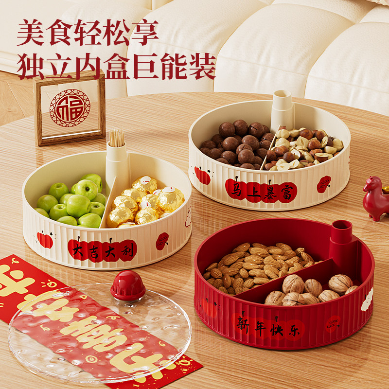 春节喜庆旋转果盘家用客厅茶几干果盘分格零食坚果糖果盒玄关摆件