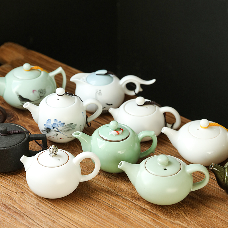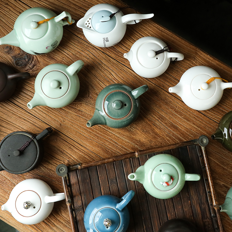 紫砂西施壶青瓷茶壶汝窑开片可养单壶家用陶瓷茶具简约套装泡茶器
