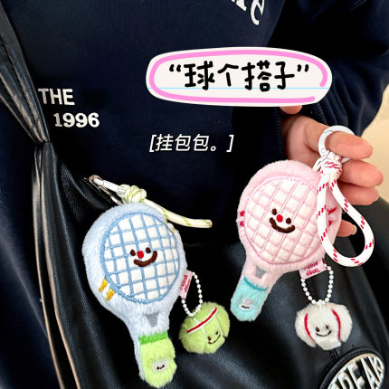 礼物奖品腾亿原创可爱毛绒网球拍公仔挂件少女包包钥匙扣挂坠情侣