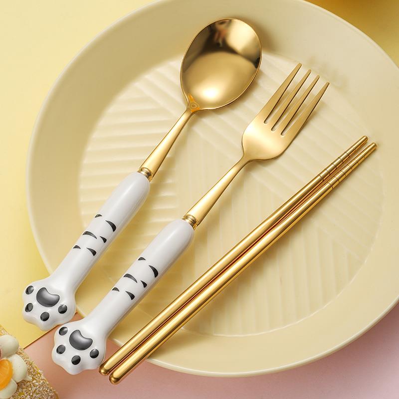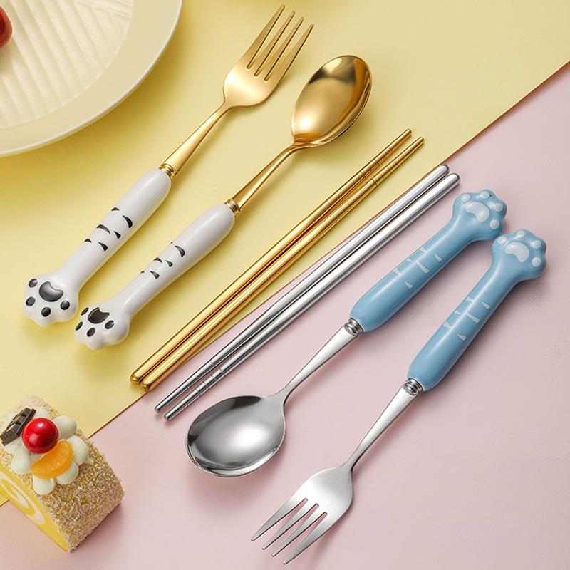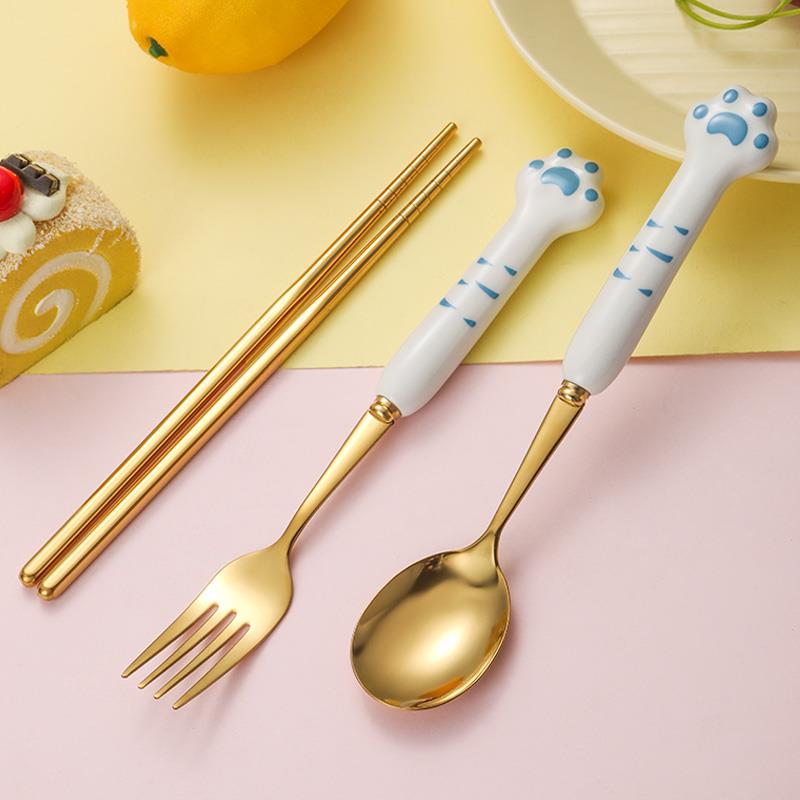 304不锈钢勺子长柄陶瓷家用饭勺可爱卡通儿童餐具成人勺调羹汤匙