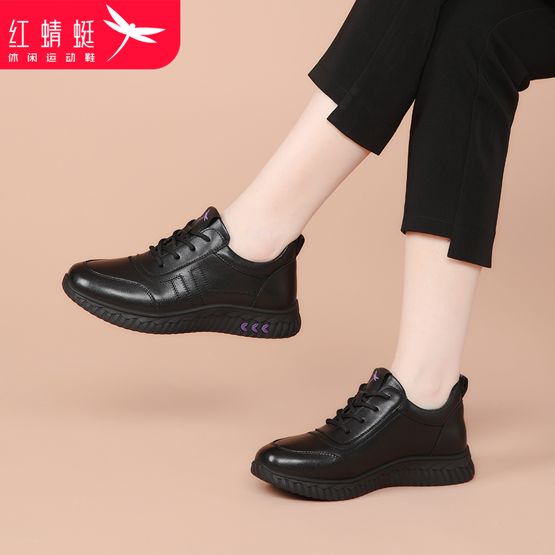 红蜻蜓女鞋秋冬季新款鞋子休闲运动鞋女加绒保暖老人妈妈棉鞋皮鞋