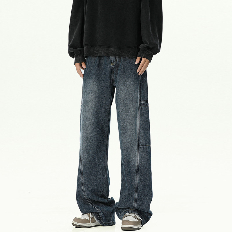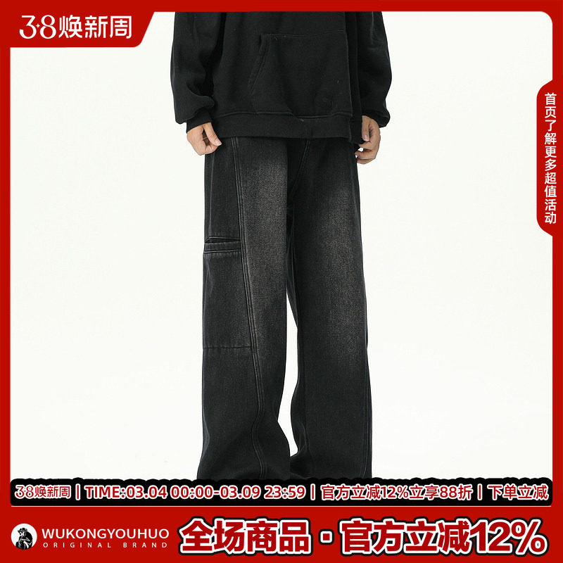 悟空有货街头复古做旧水洗牛仔裤男复古潮牌美式高街百搭休闲长裤
