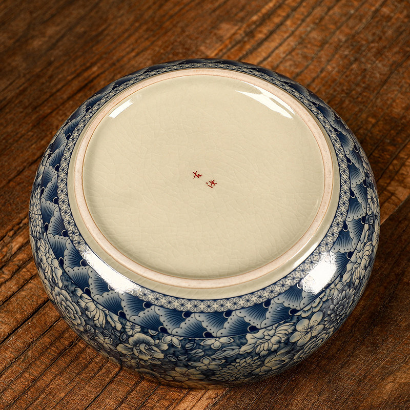 汝窑青花茶洗家用开片大水盂水洗杯洗茶道配件复古洗茶器建水茶具