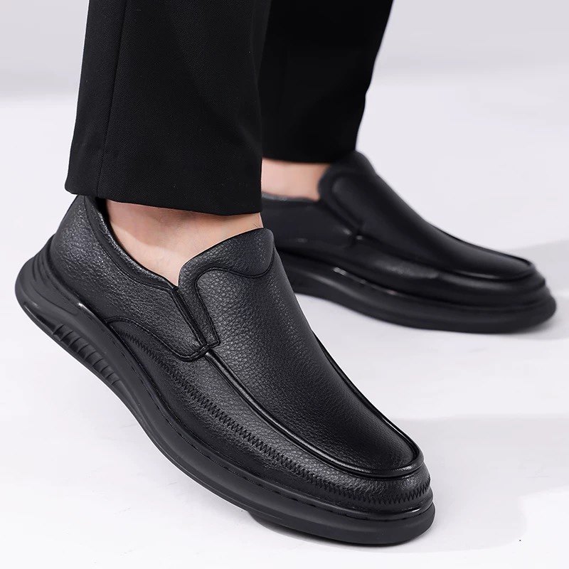 意尔康男鞋真皮商务休闲皮鞋男士2025新款软底爸爸鞋中老年豆豆鞋