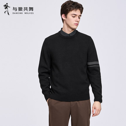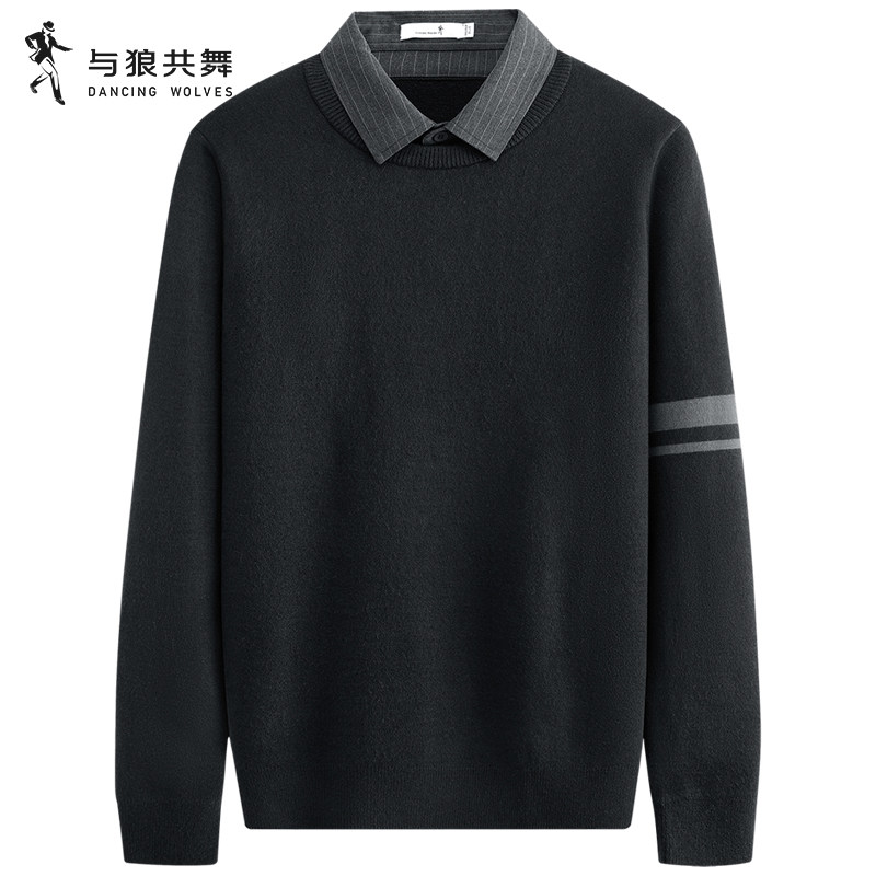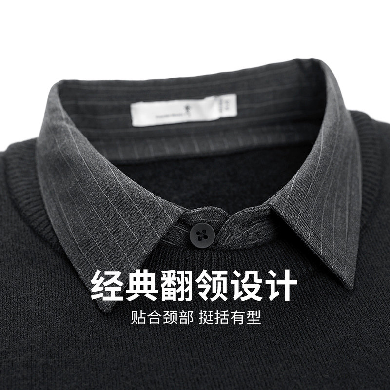【羊毛】与狼共舞假两件翻领毛衣男2025秋冬新款抗菌保暖针织毛衫