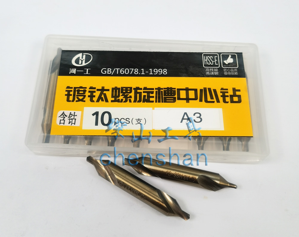 河一工镀钛螺旋中心钻A型A1A1.5A2.0A2.5A.3.0A3.5A4高速钢6542料