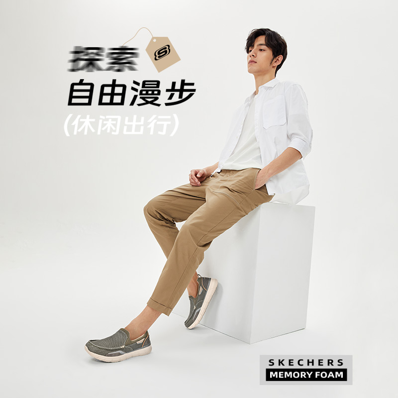 斯凯奇男鞋一脚蹬健步鞋简约布鞋