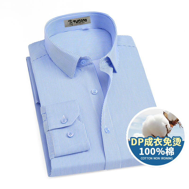 啄木鸟男士新款DP成衣免烫长袖衬衫纯棉夏季商务正装条纹职业衬衣