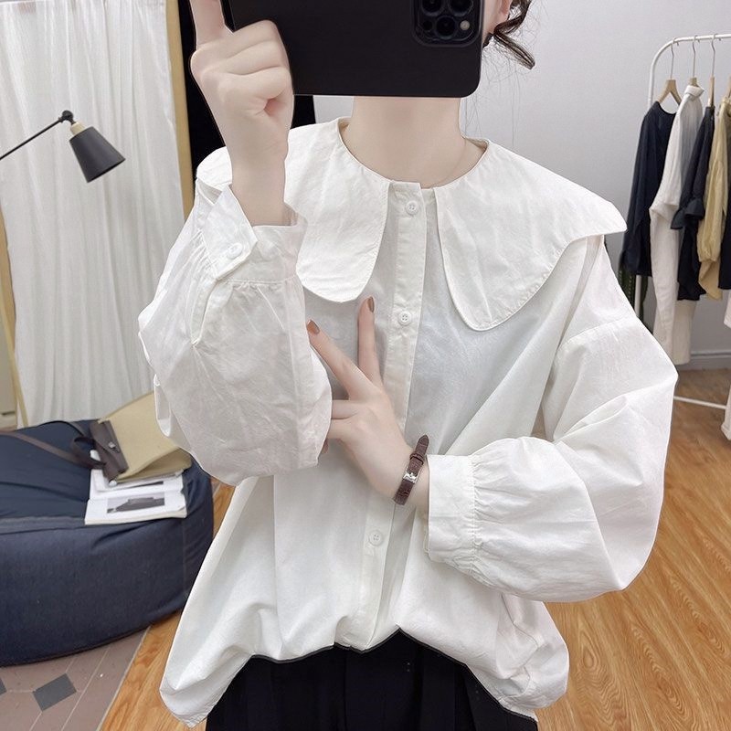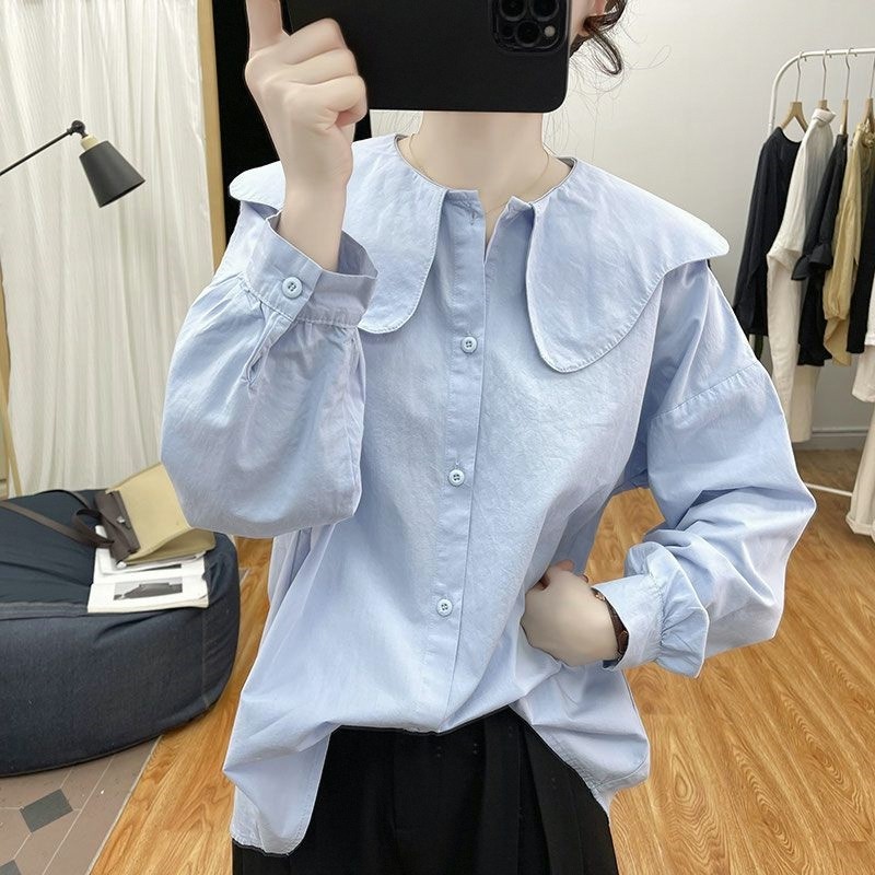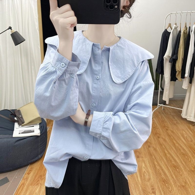 春秋设计感花瓣娃娃领全棉灯笼袖长袖衬衫女上衣2025新款减龄衬衣