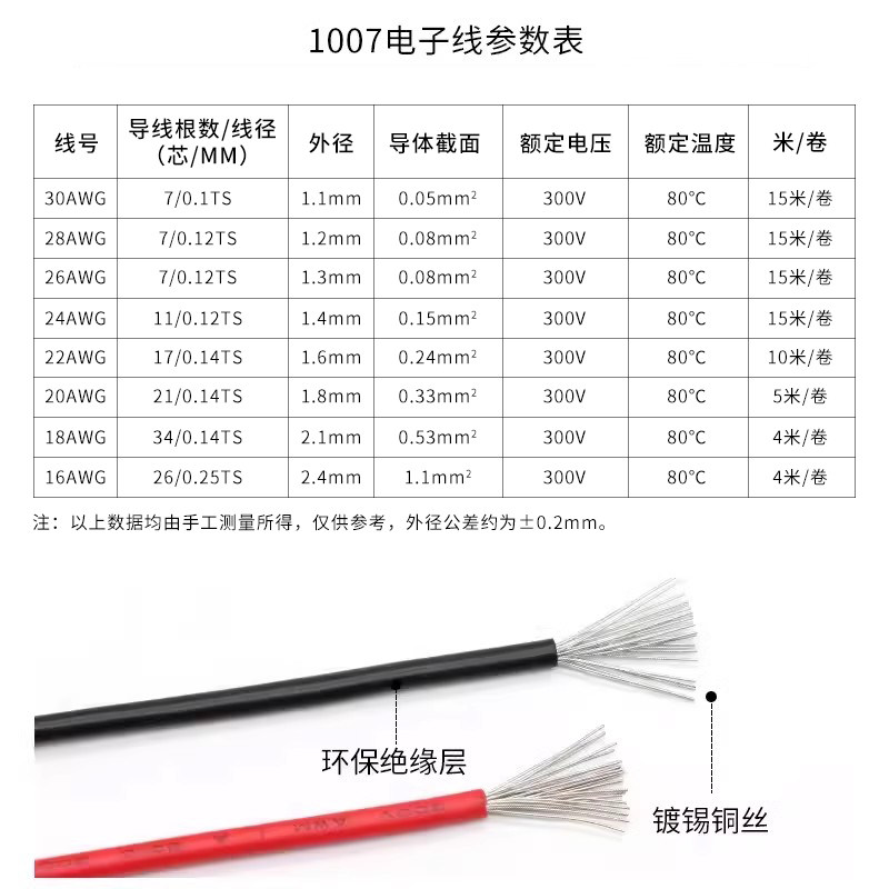 1007电子线软线汽车改装线电线26/24/20/18AWG连接线导线盒装卷装