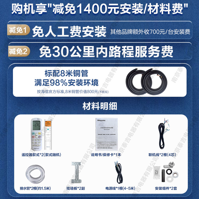 国补8折海信一拖二空调挂机1匹1.5匹2匹卧室家用变频中央空调泰吉