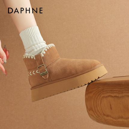 达芙妮厚底雪地靴女2025冬季新款东北加绒保暖棉鞋勾花面包短靴子