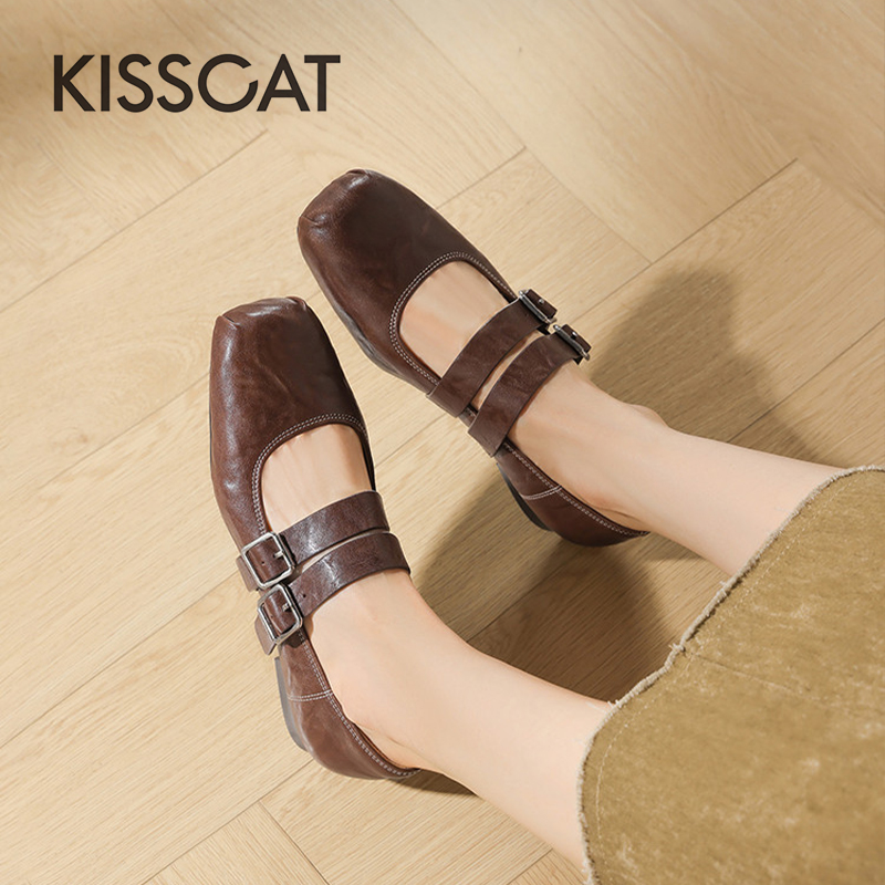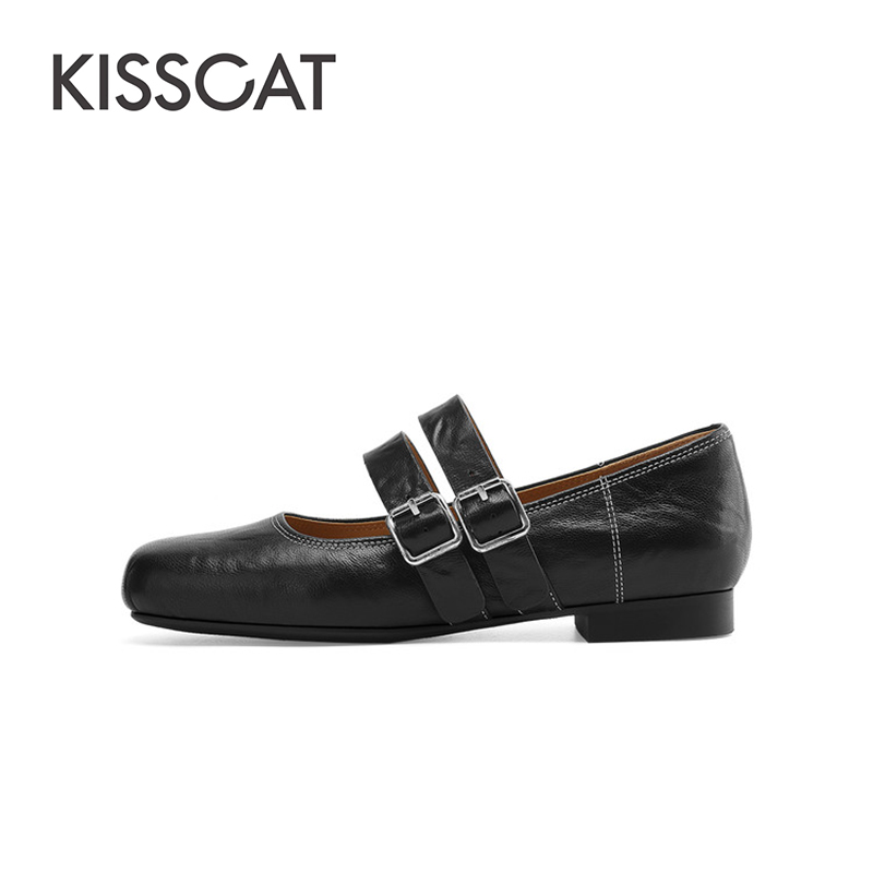 KISS CAT/接吻猫春秋羊皮玛丽珍鞋方头浅口低跟单鞋女KA65598-10