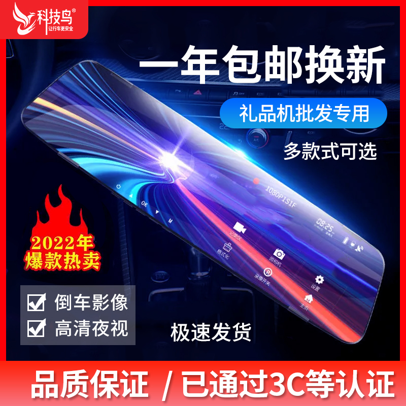 汽车载后视镜行车记录仪礼品前后双录镜头高清夜视倒车影像