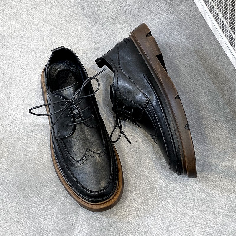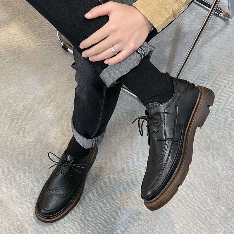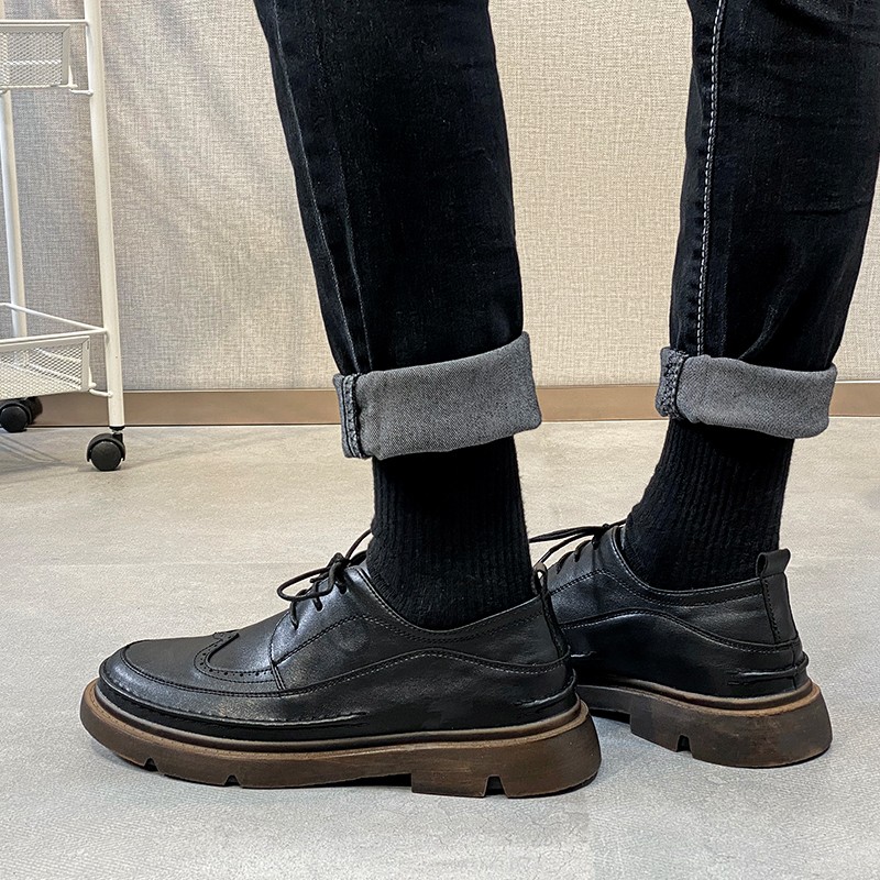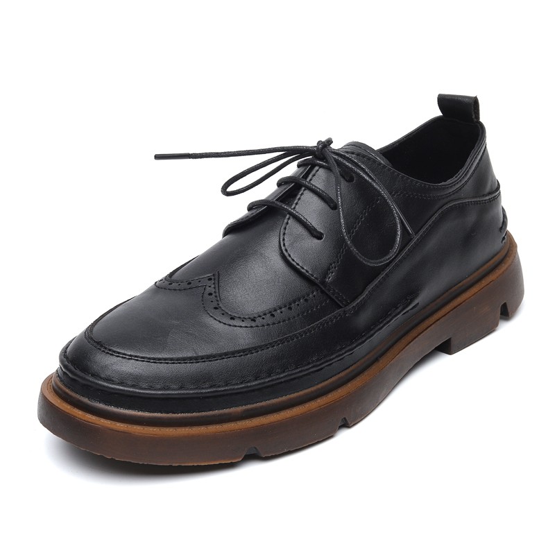 秋季内增高8cm6cm韩版潮流英伦皮鞋男百搭休闲隐形布洛克增高鞋潮