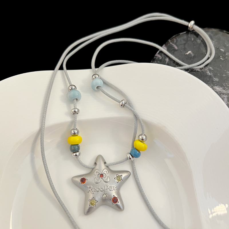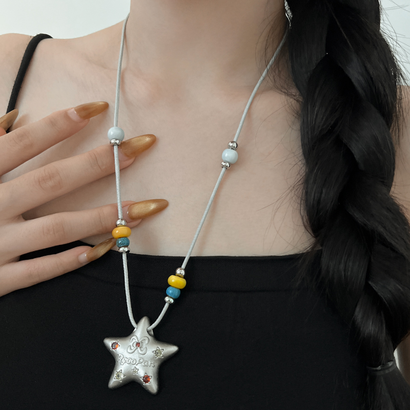 银灰色五角星项链女长款串珠甜酷多巴胺日常百搭小众装饰脖子配饰