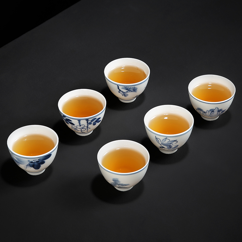 景德镇手绘功夫陶瓷茶杯青花瓷主人杯釉下彩手工茶具普洱茶杯单杯