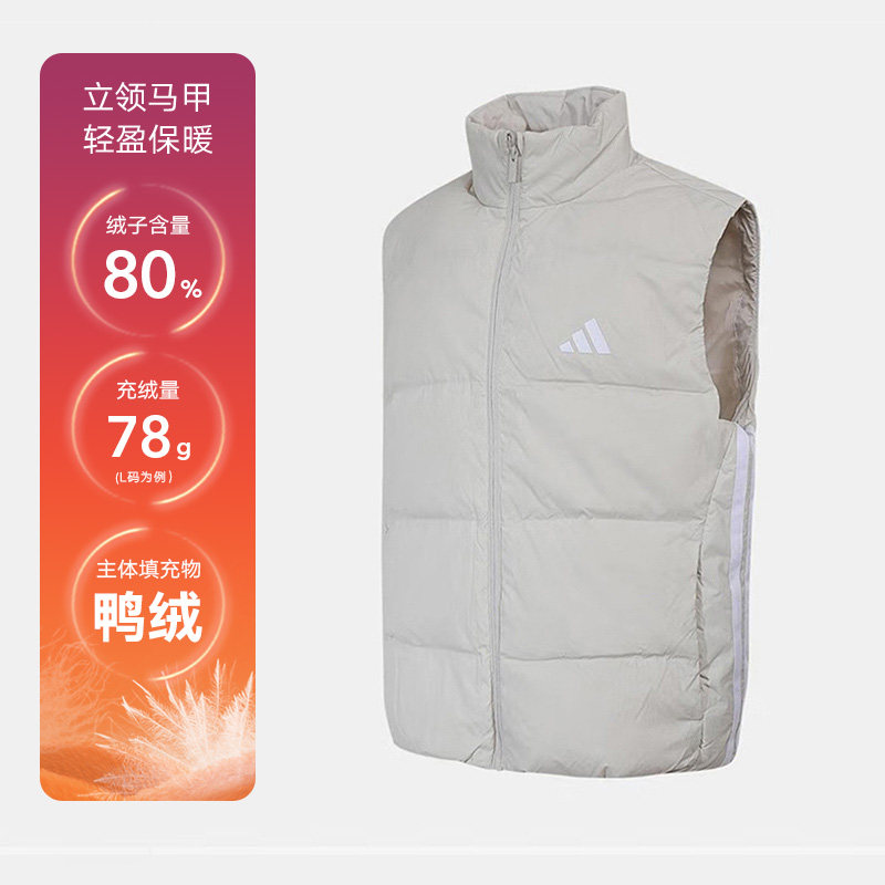 adidas阿迪达斯保暖鸭绒羽绒背心秋冬装男三条纹马甲外套KH3990