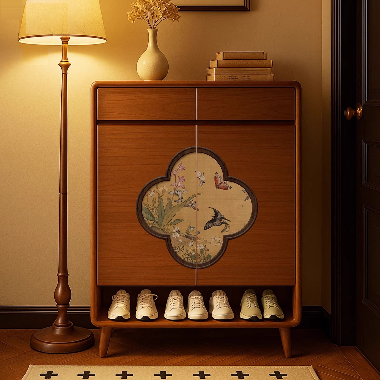 新中式实木鞋柜家用门口2025新款入户玄关一体柜多层宋氏美学家居