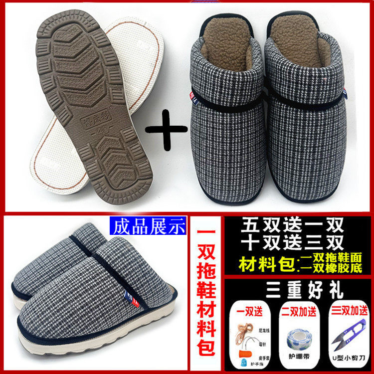 【千鸟格拖+烤火底材料包】直播手工半成品厚棉拖鞋防滑耐磨鞋底