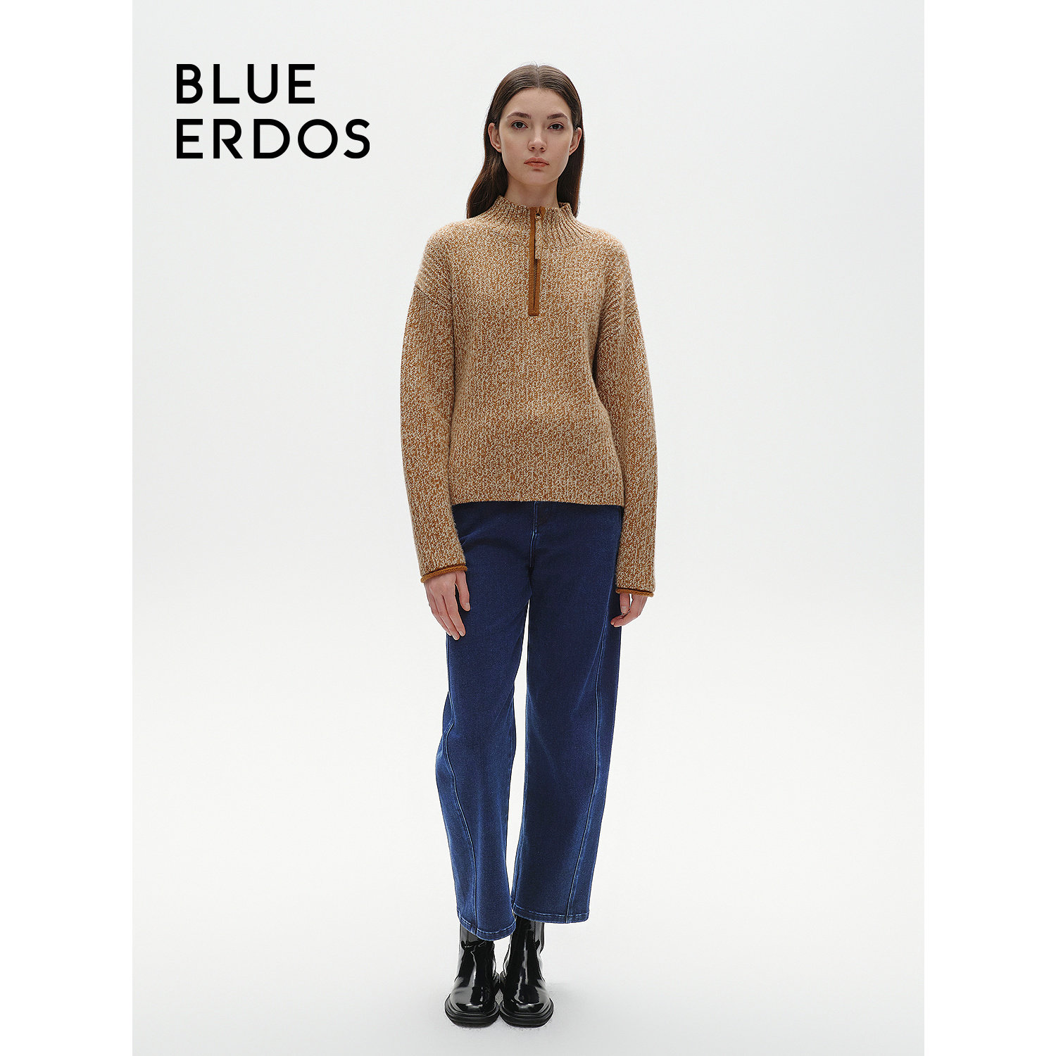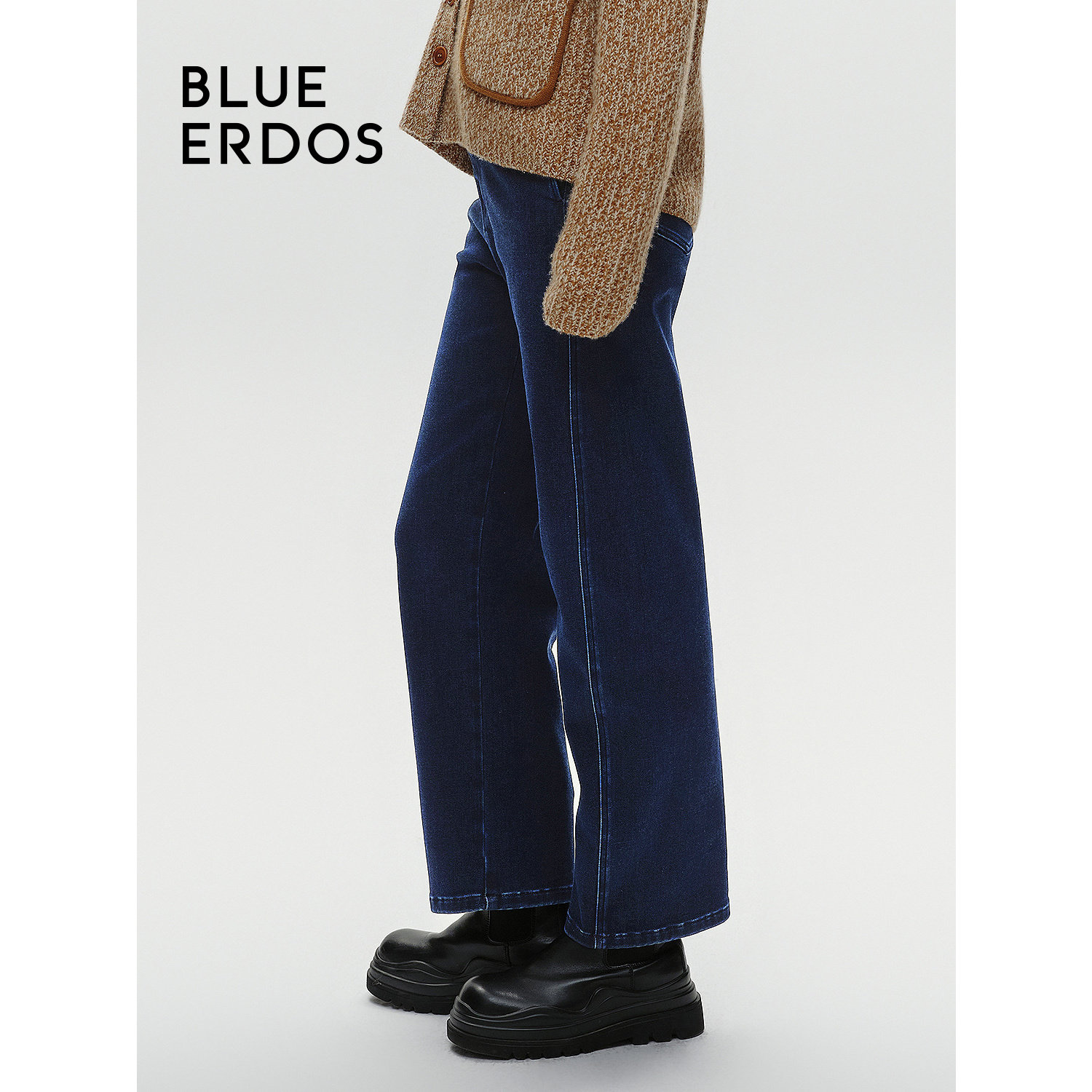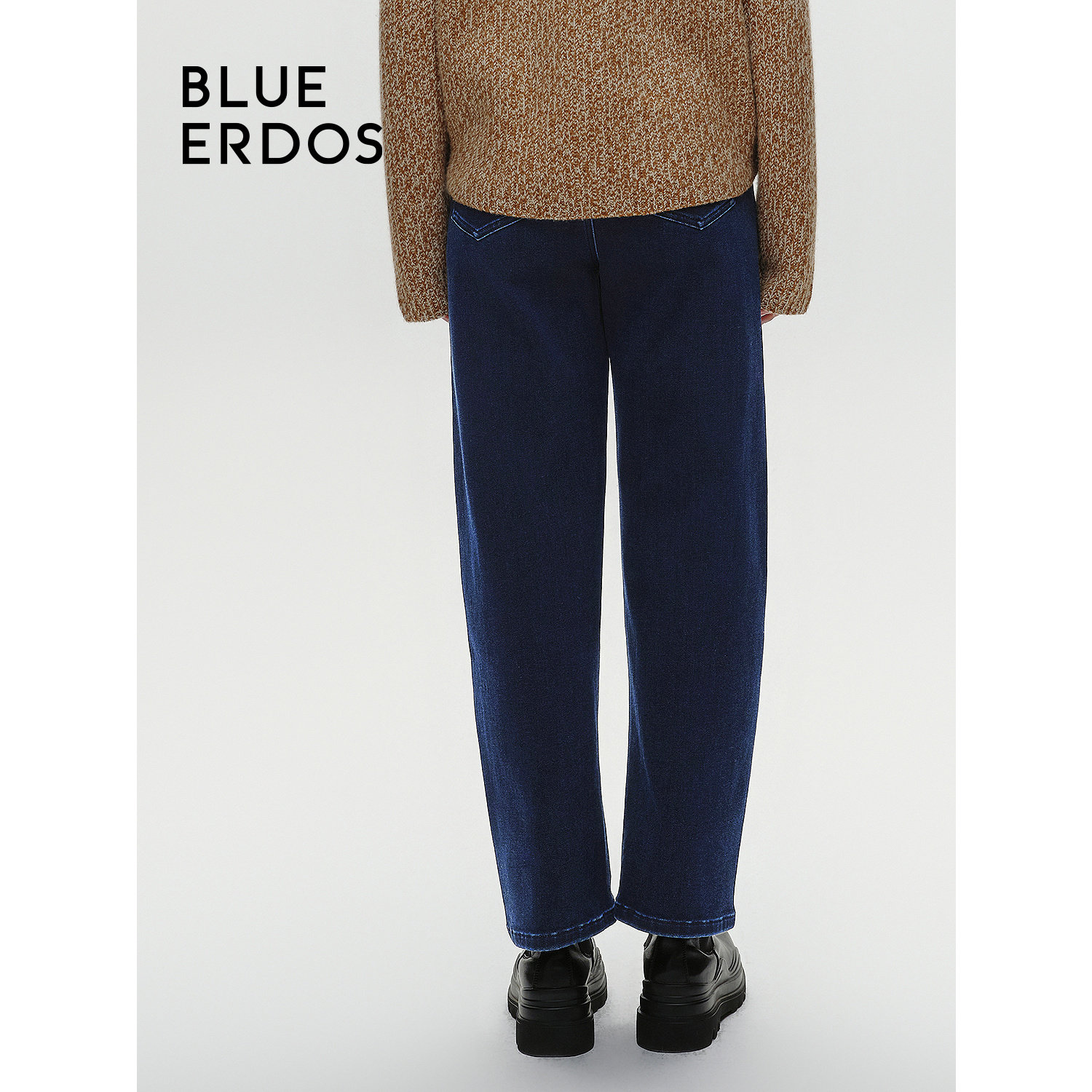 BLUE ERDOS冬季简约通勤高腰弯刀裤弹力牛仔裤女B246M3017