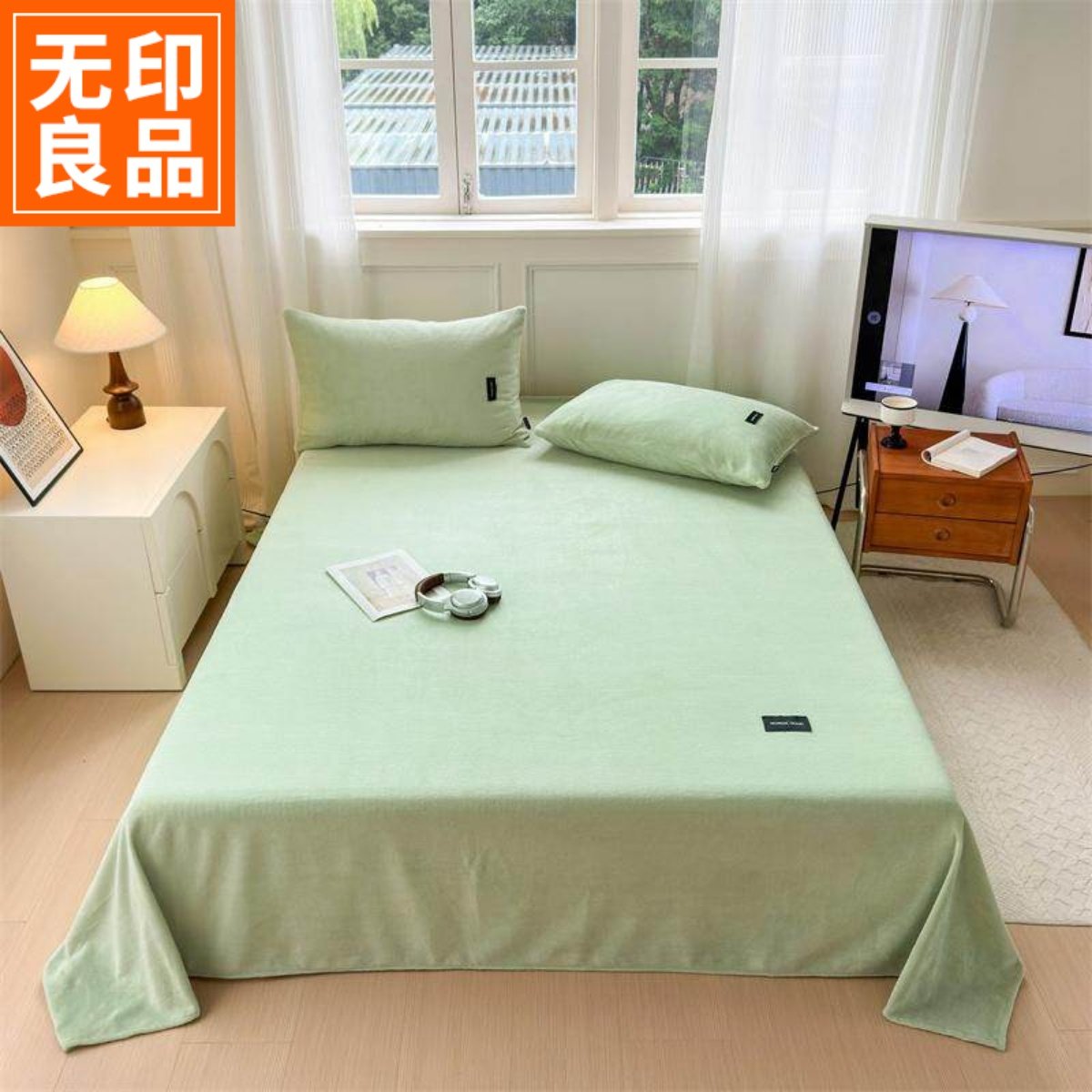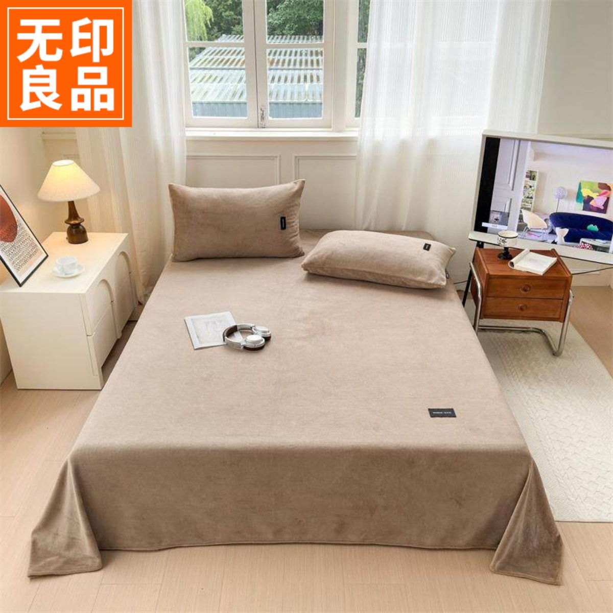 无印良品A类冬天牛奶绒床单单件珊瑚绒毛毯床罩单双人床1.5米被单