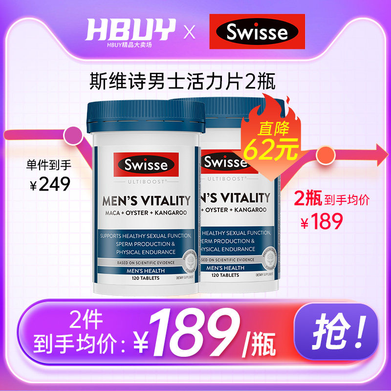 swisse男士活力雄风片牡蛎精片锌镁硒玛卡促睾玛咖男性保健品*2瓶