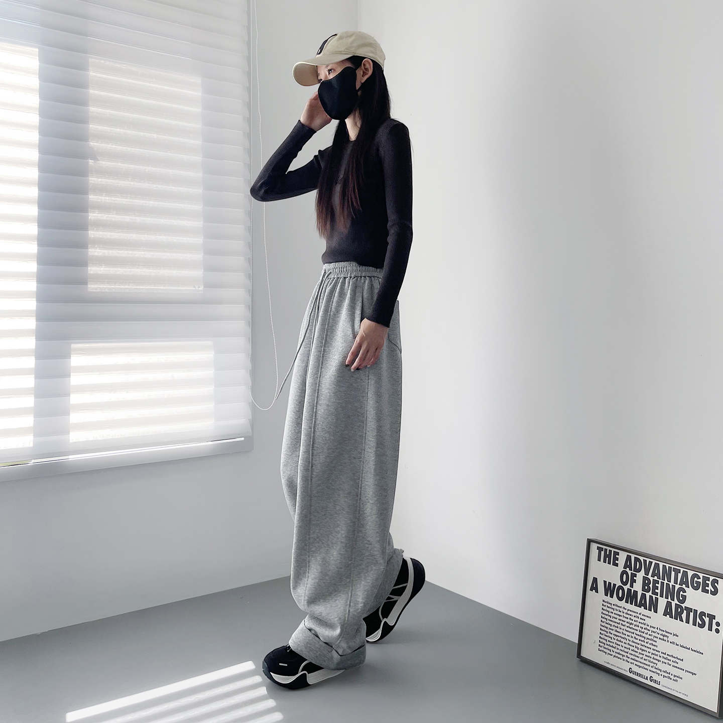 美式高腰慵懒风休闲阔腿裤女冬季新款大码胖mm宽松显瘦松弛感卫裤