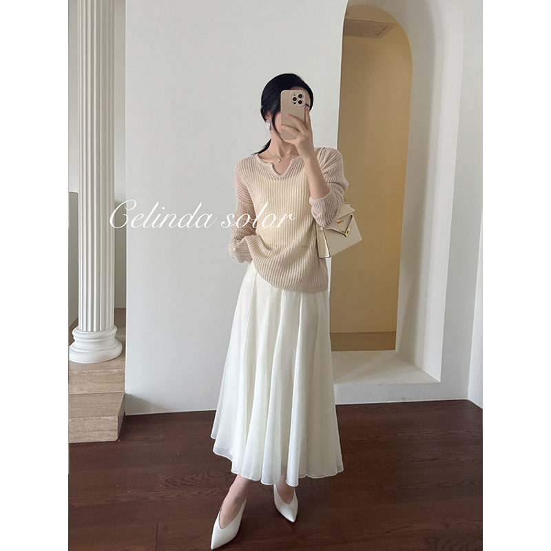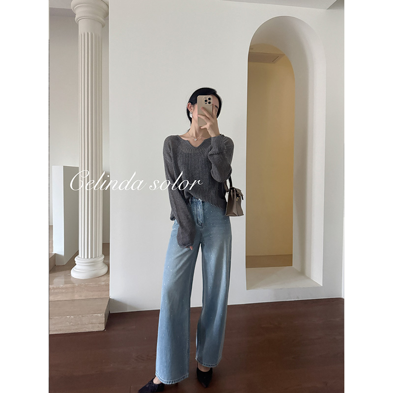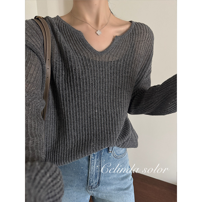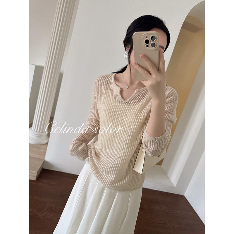 娇阳 法式温柔慵懒 星光熠熠 100羊绒镂宽针织衫套头毛衣