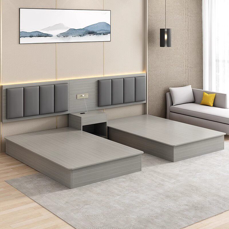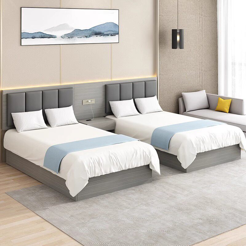 酒店宾馆家具标间软包床头民宿成套客房快捷旅馆专用双人床