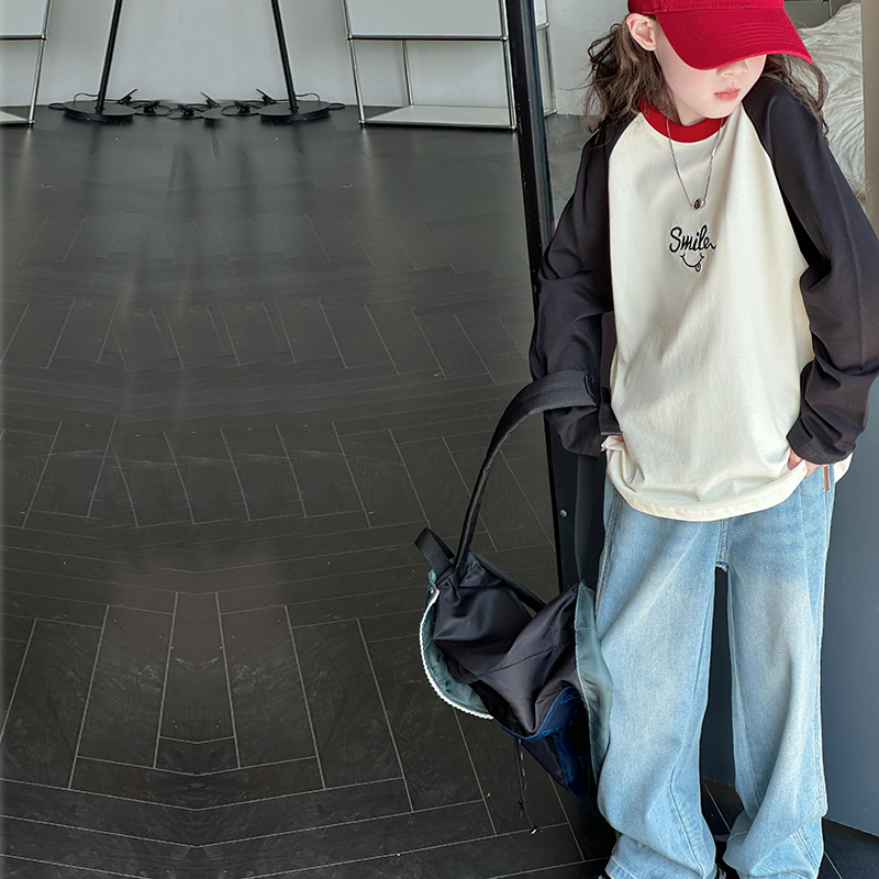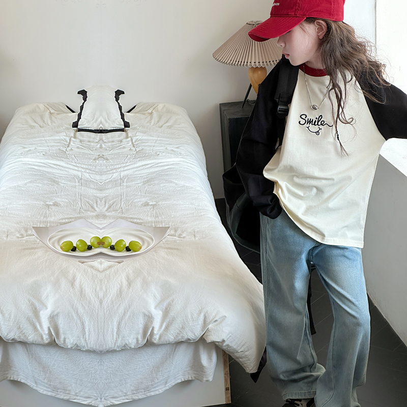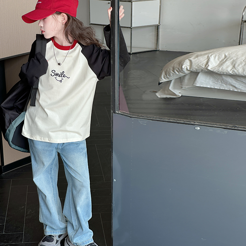 女童长袖t恤纯棉2025新款洋气儿童春秋款大童休闲薄款打底衫上衣