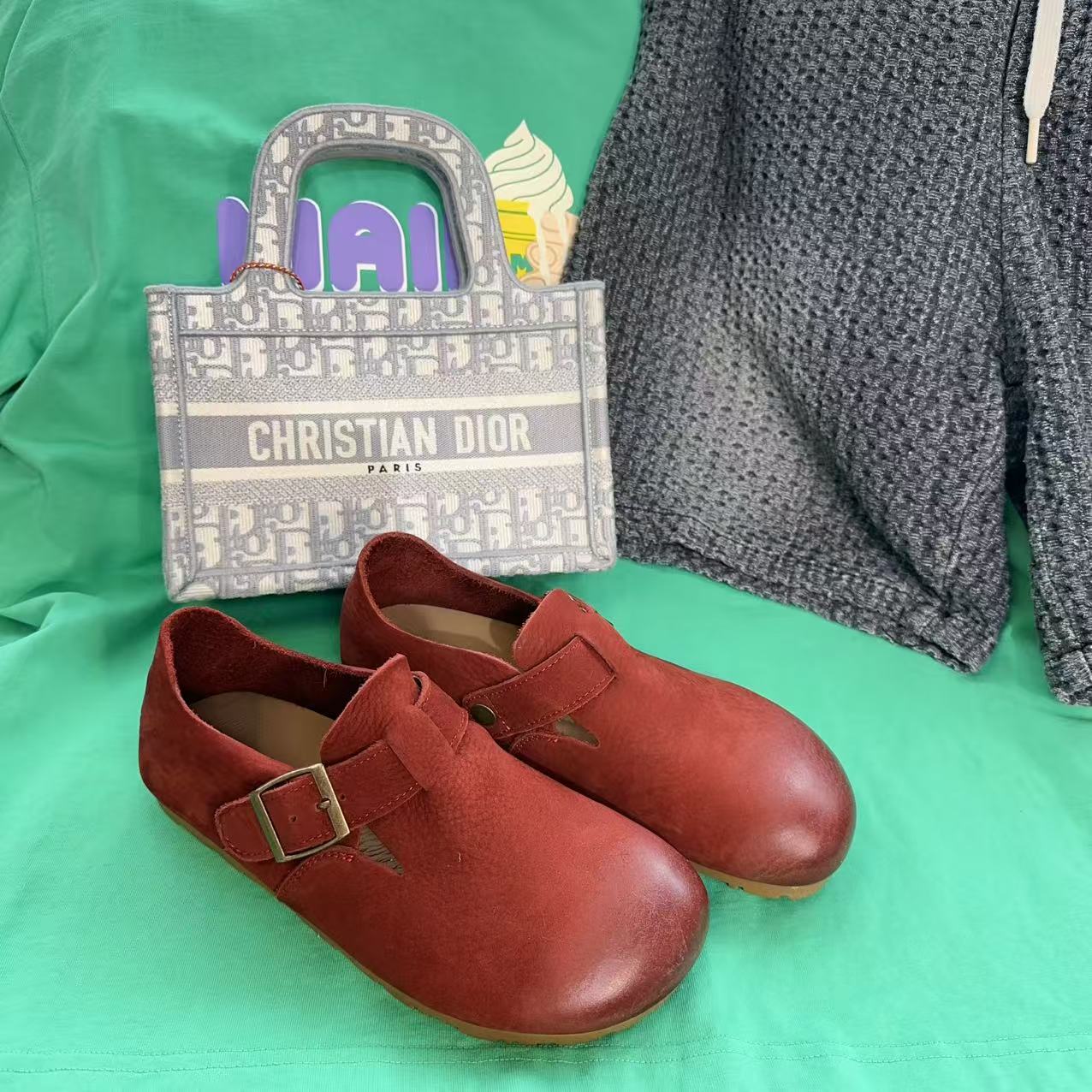 【琪琪和小哥】2025夏秋新款头层牛皮软底舒适复古休闲博肯女鞋
