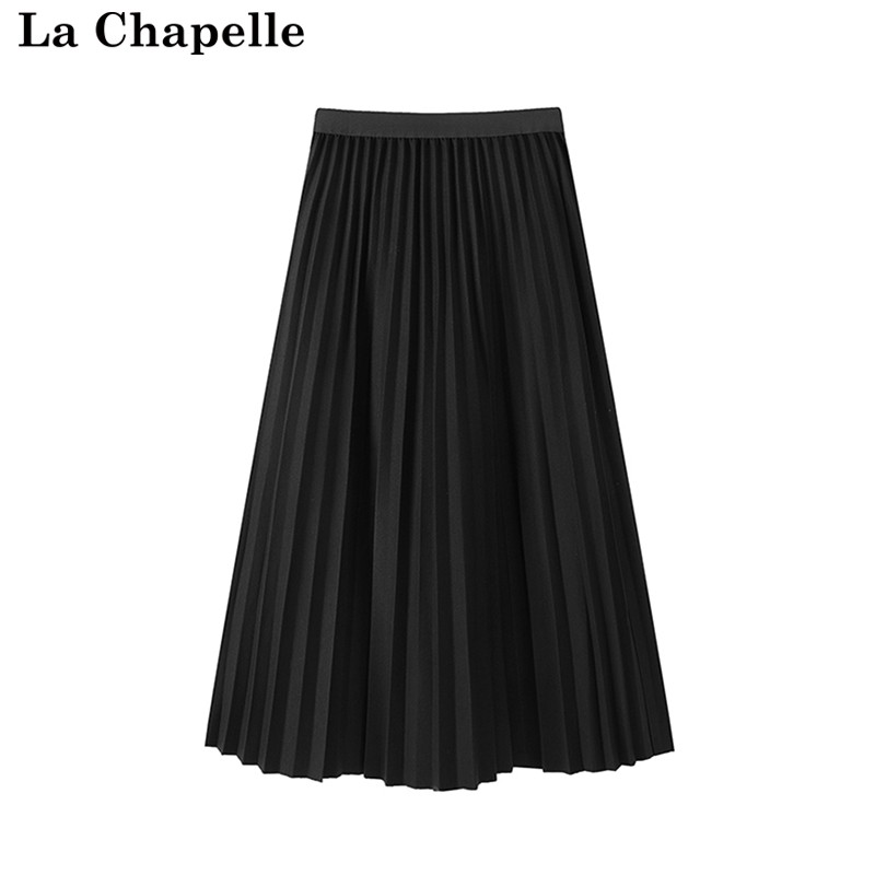 拉夏贝尔/La Chapelle法式垂感百褶半身裙女夏季新款高腰A字伞裙