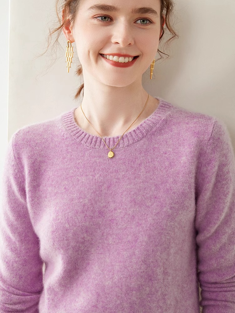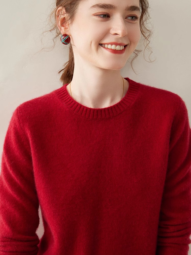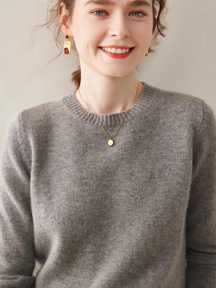 七针双股加厚100%纯山羊绒衫女低圆领长袖套头打底毛衣针织衫内搭