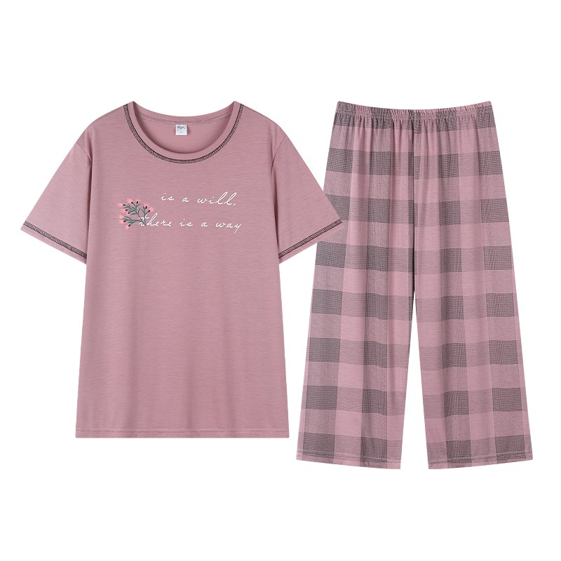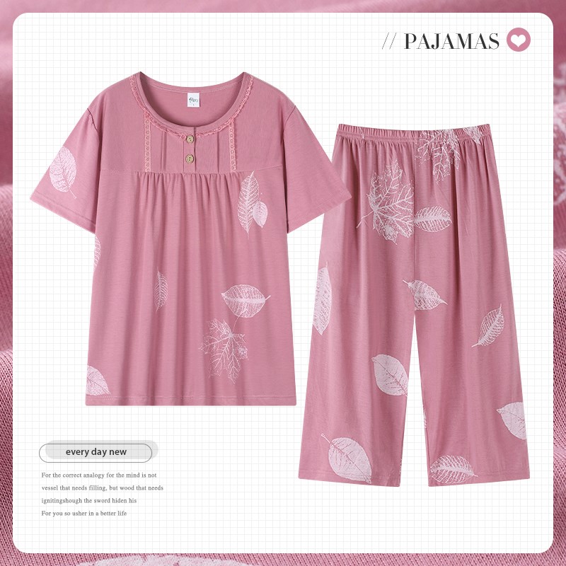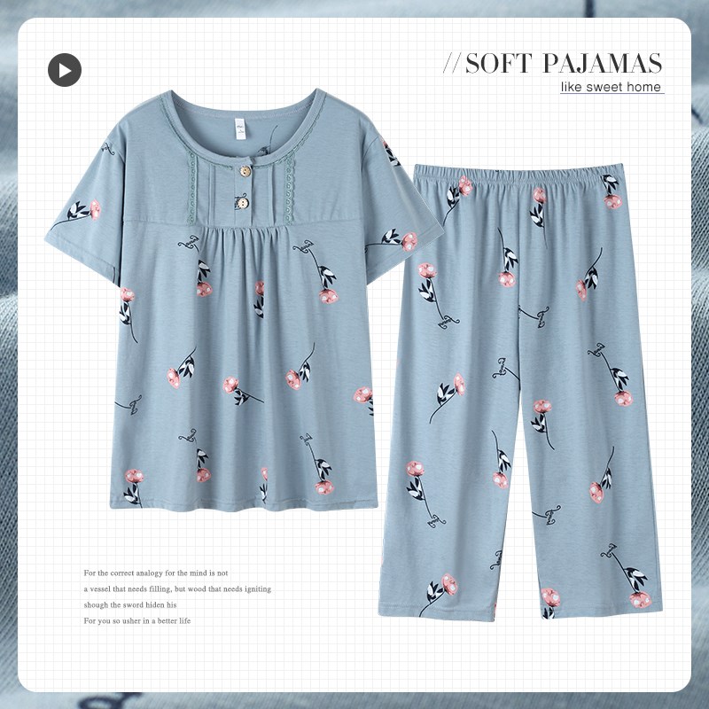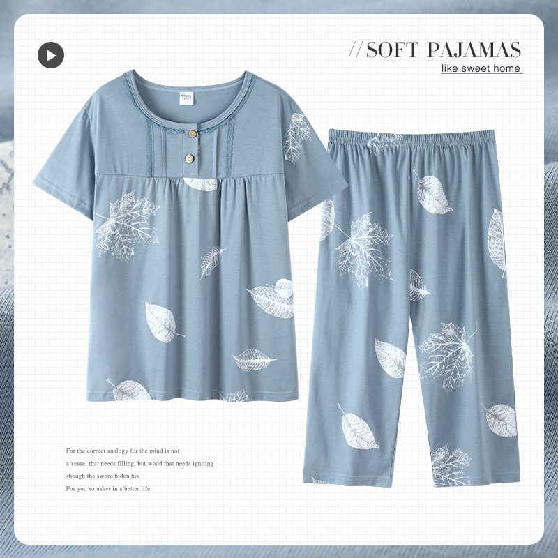 妈妈睡衣夏季纯棉短袖七分裤中年人妇女士家居服夏T天全棉大码套