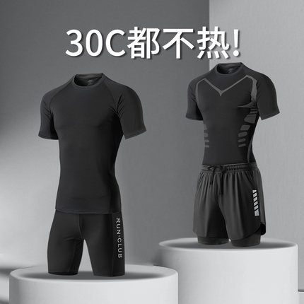 速干T恤男吸汗紧身衣套装短袖篮球训练服跑步上衣运动健身骑行服