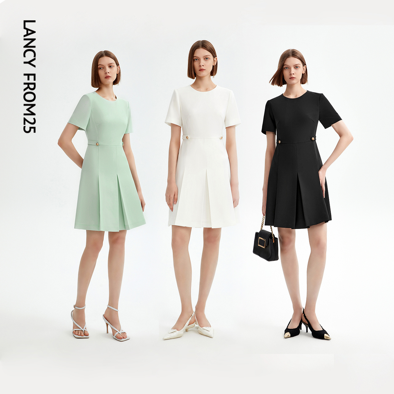 [朗姿奥莱]朗姿气质高级感黑色白色连衣裙夏季裙子法式复古小黑裙