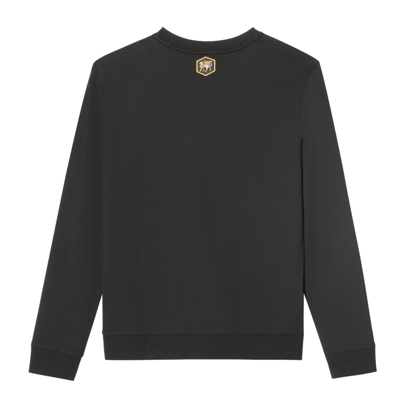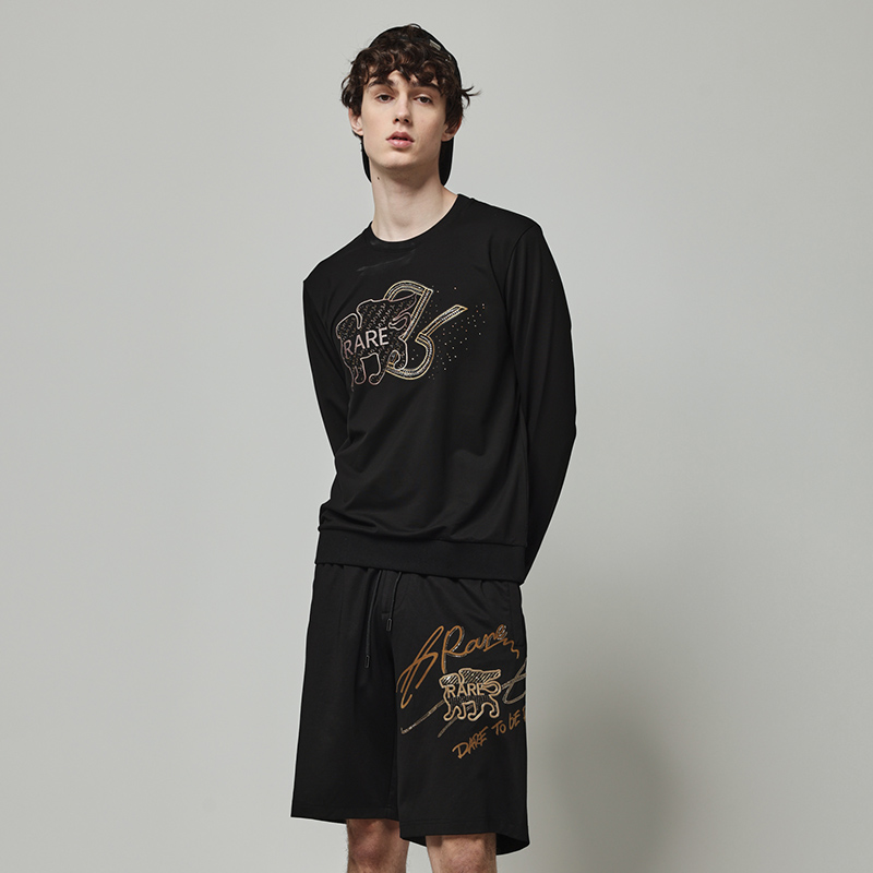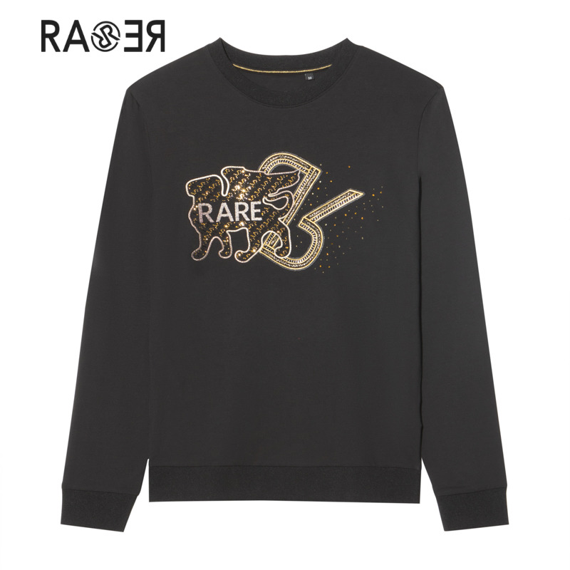 RARE威雅男装春夏新款男士套头上衣黑色圆领前胸金色飞狮卫衣