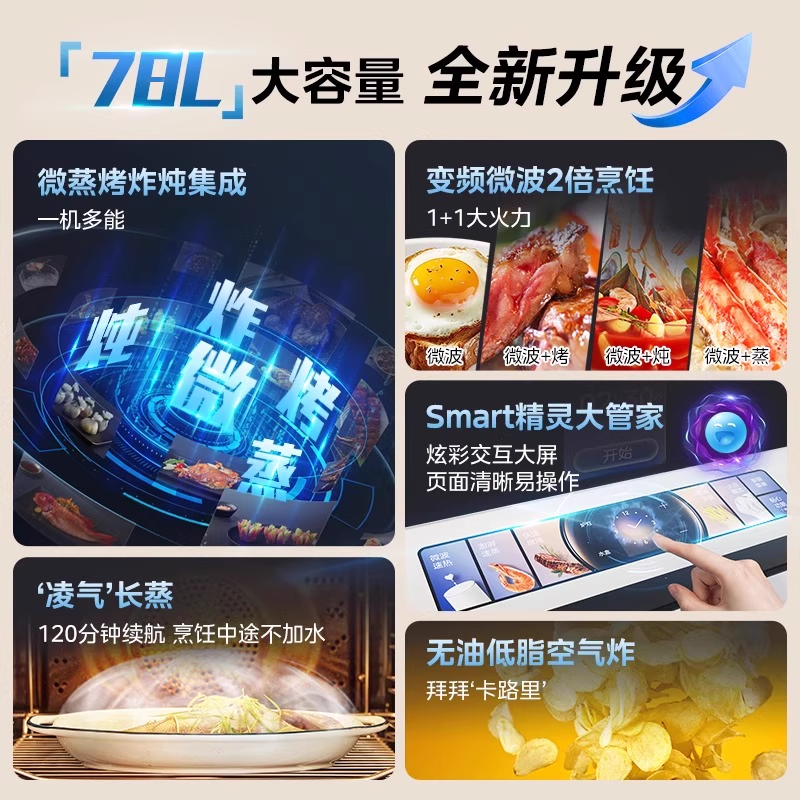 美的出品华凌G1微蒸烤炸炖一体机嵌入式微波蒸烤箱家用78L大容量