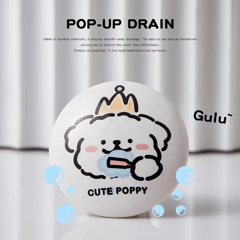 可爱小狗陶瓷洗脸盆卫生间洗手池漏水塞洗脸盆下水器创意弹跳芯