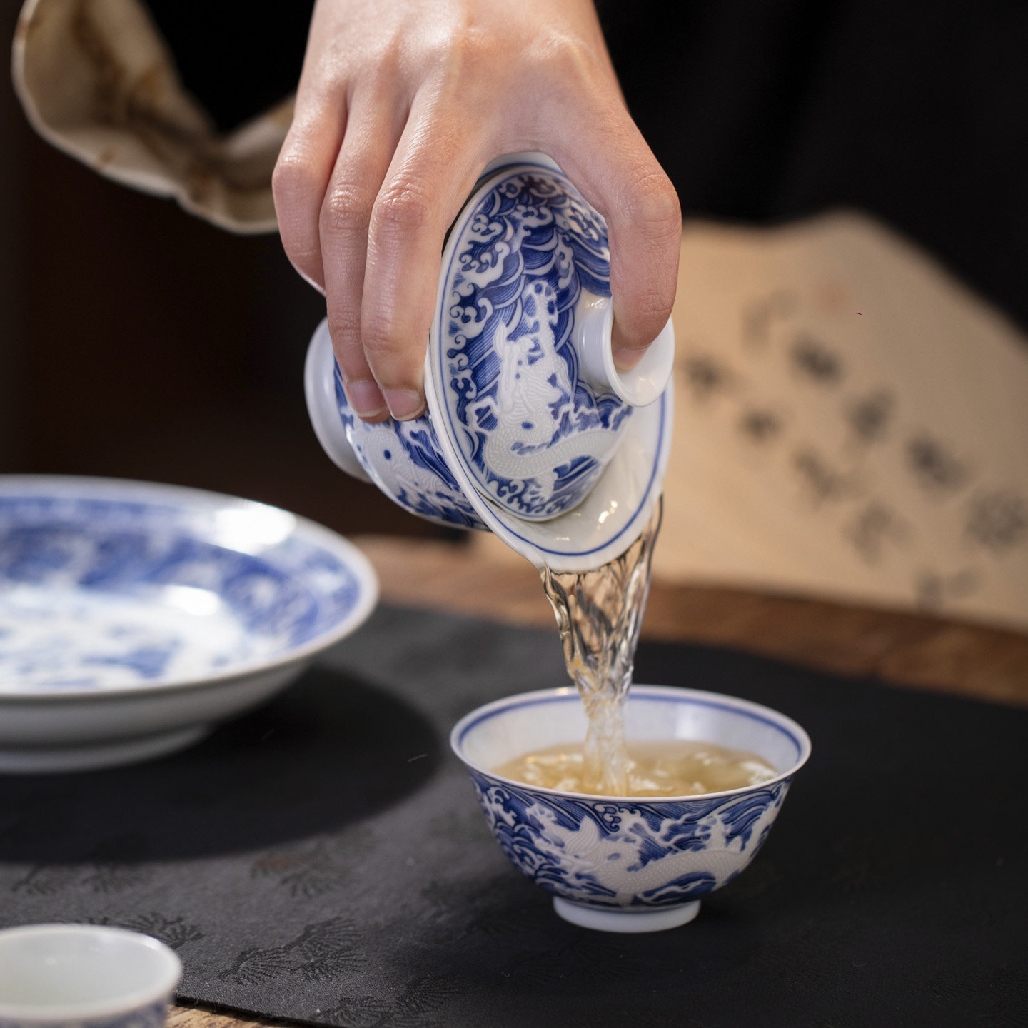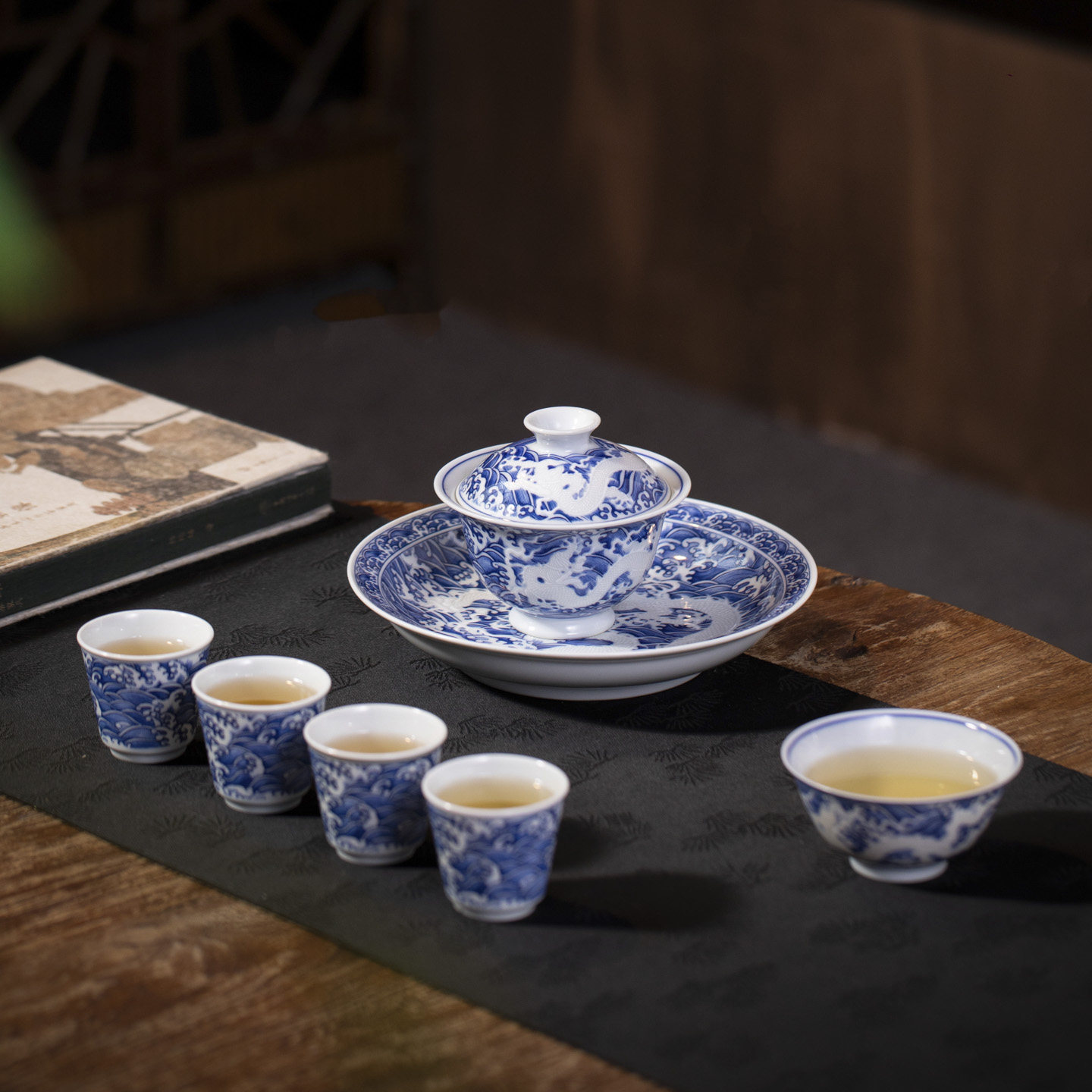 釉下青花浮雕龙纹茶器