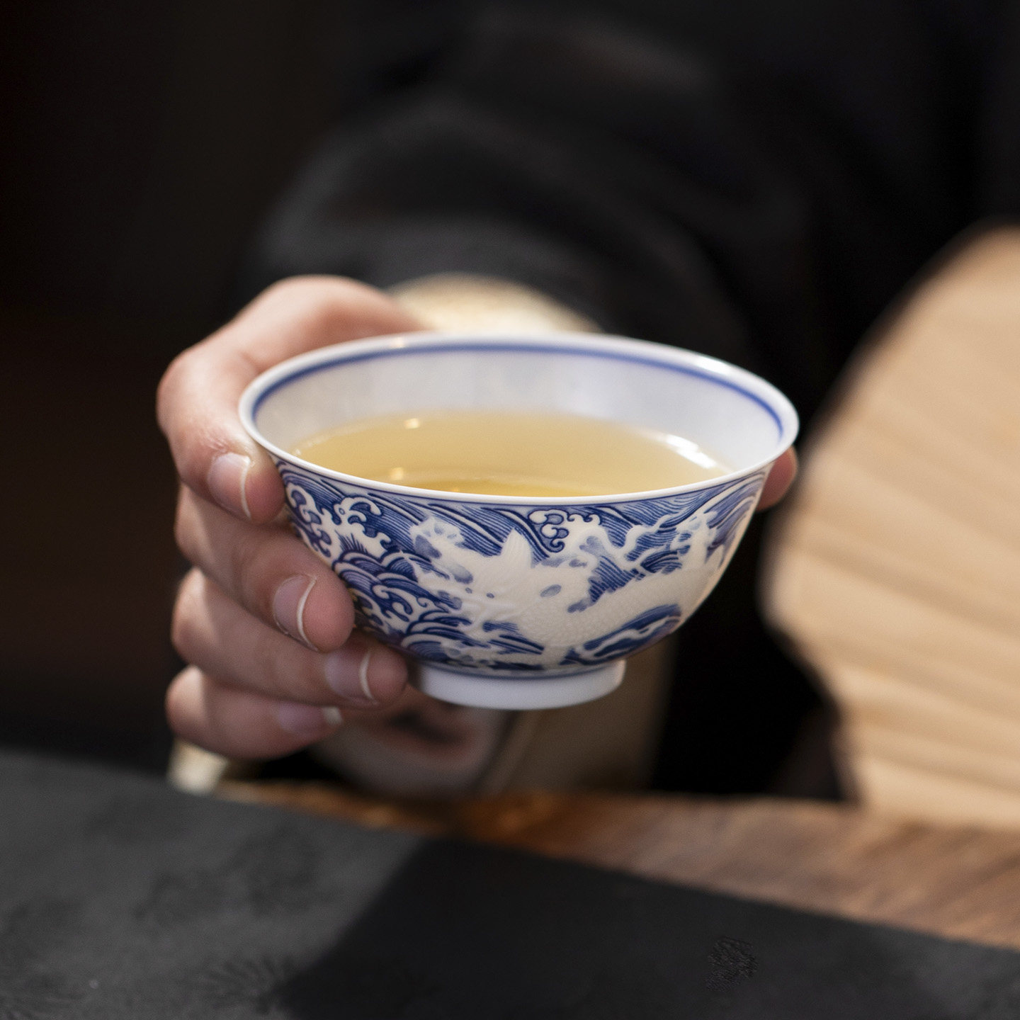 景德镇主人杯茶杯单杯个人茶杯釉下青花浮雕龙纹高白泥青花瓷